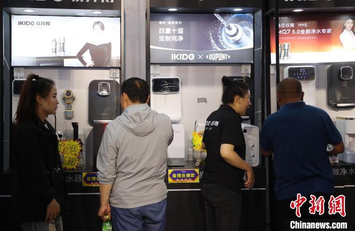 5月25日,宁夏银川国际会展中心,市民在银川家博会现场选购商品。中新社记者 于晶 摄